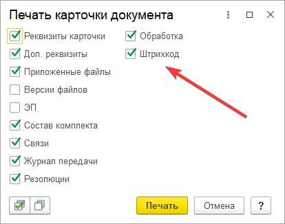 В новой версии программы при печати карточки документа можно вывести Штрихкод.