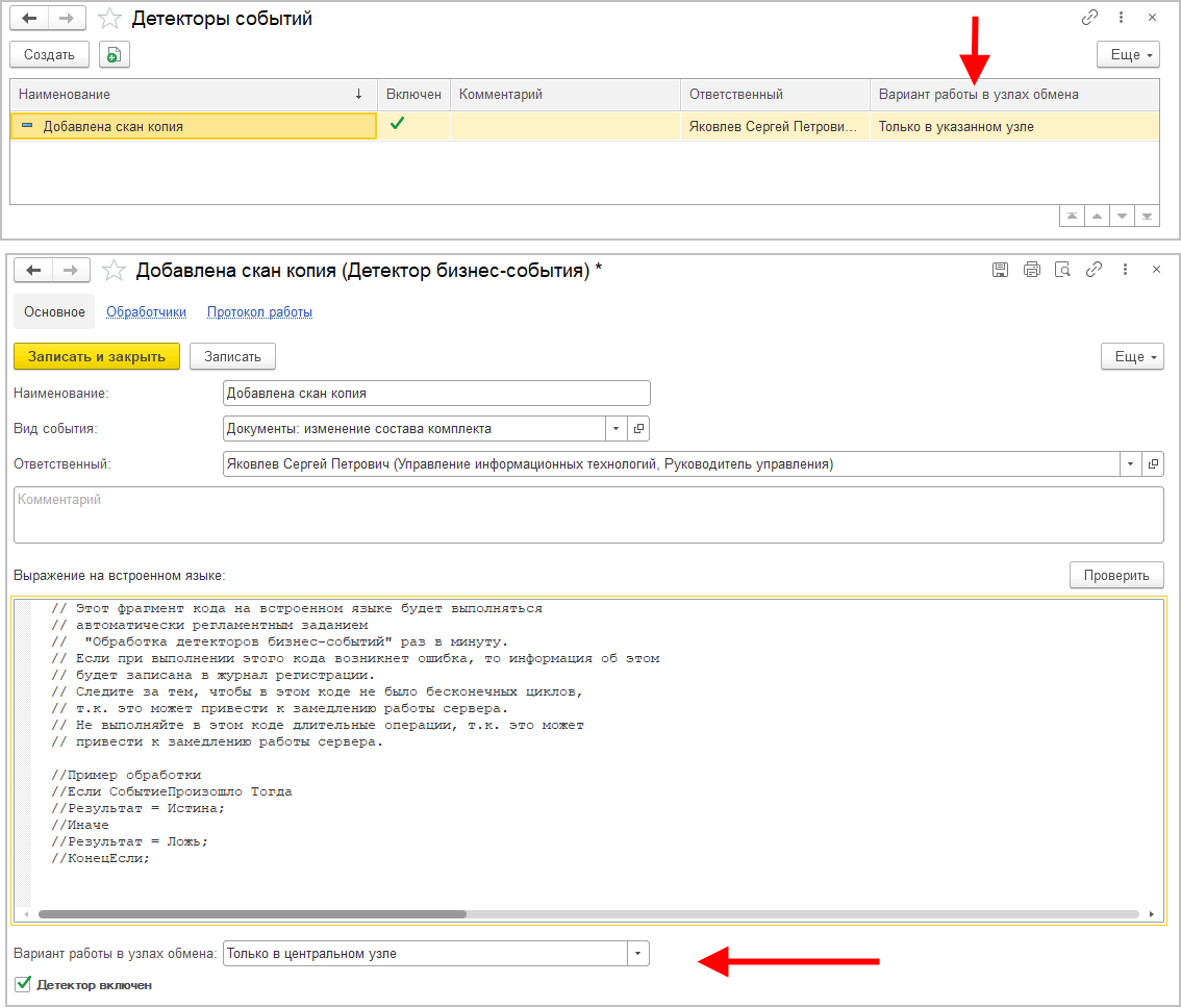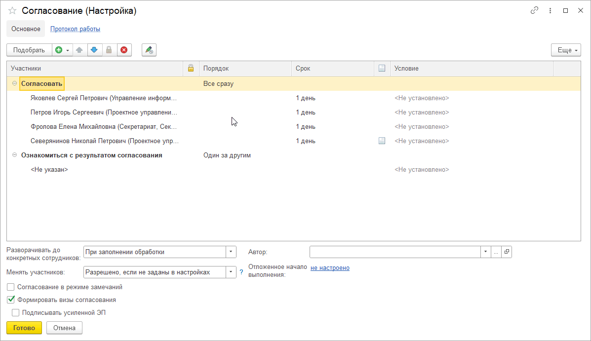 ■ Учет особенностей конфигурации – например, можно включать в обработку документа сотрудников, работающих в разных узлах.
