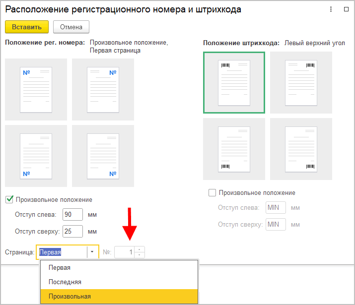 Доступно положение строго сверху слева или сверху справа на первом листе.