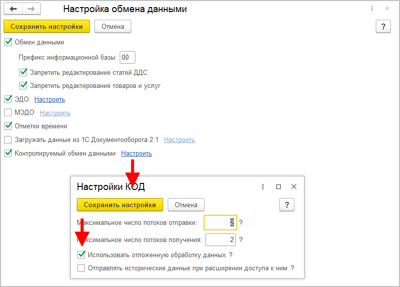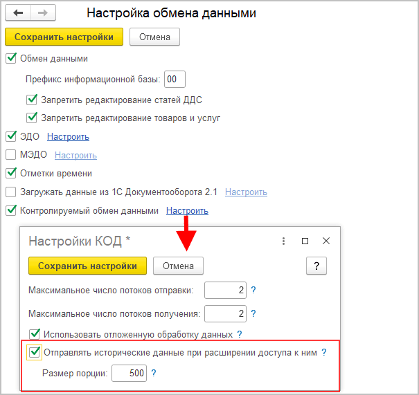 3. В разделе Настройка – Настройка программы – Обмен данными включить Контролируемый обмен данными.