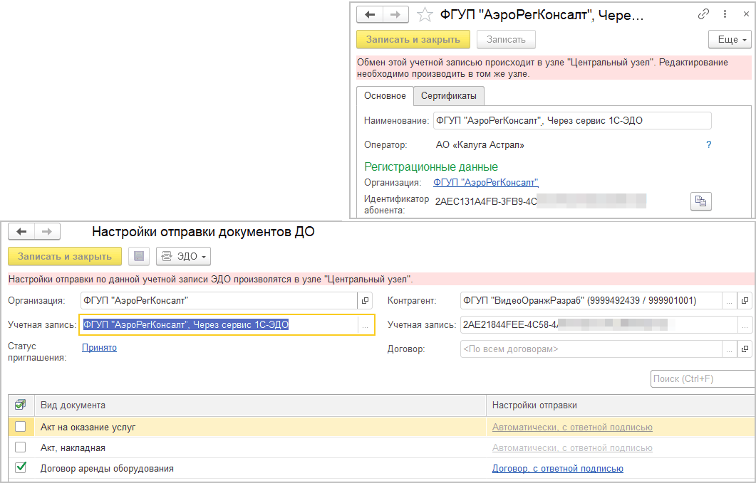 4.3.1. Порядок настройки в информационной базе центрального узла