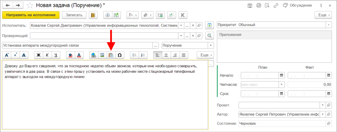 Для этого в карточке задачи предусмотрена команда Вставить текст из буфера без форматирования.