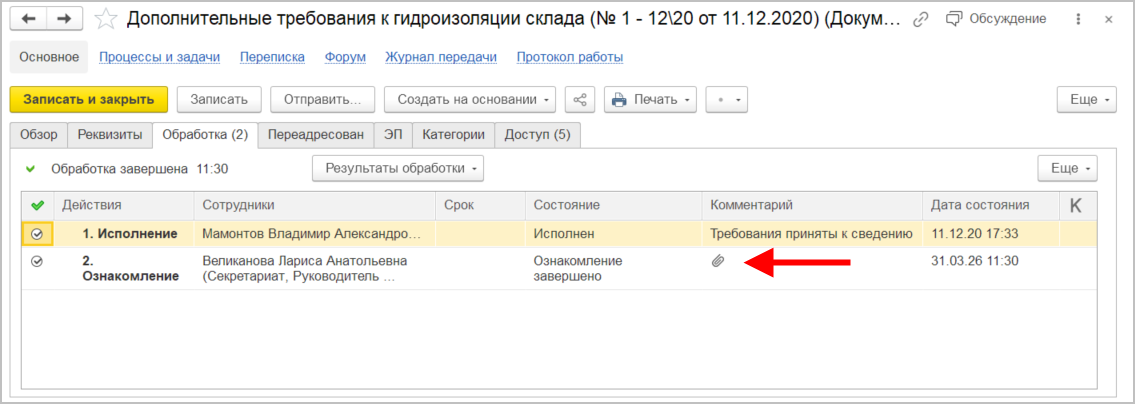 В новой версии программы если при выполнении задачи «Ознакомиться» приложен файл, то иконка отображается в следующих интерфейсах: