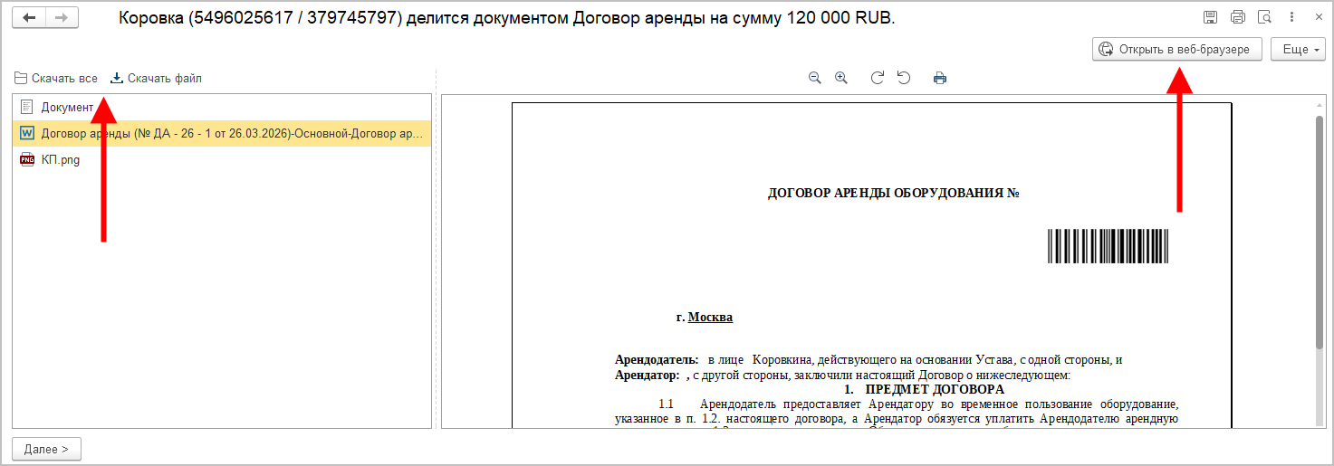В новой версии программы появилась возможность полноценно работать с присоединенными файлами 1С:Документооборота прямо на закладке Обзор в интерфейсе ИС, даже если в настройках интеграции отключено хранение файлов в 1С:Документообороте.