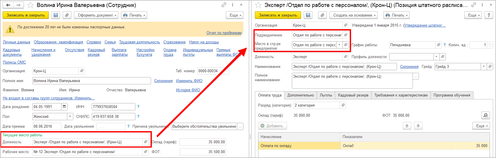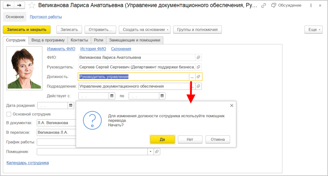 В новой версии программы стало удобнее перевести сотрудника на другую должность / в подразделение.
