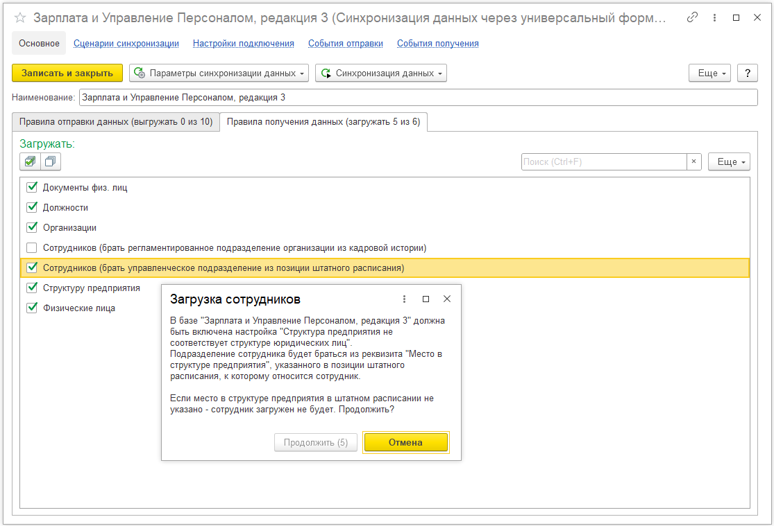 На некоторых внедрениях регламентированная и управленческая структуры могут различаться, но соответствие между ними может быть задано в позициях штатного расписания. В новой версии программы этот сценарий поддерживается при загрузке сотрудников в 1С:Документооборот с помощью синхронизации.