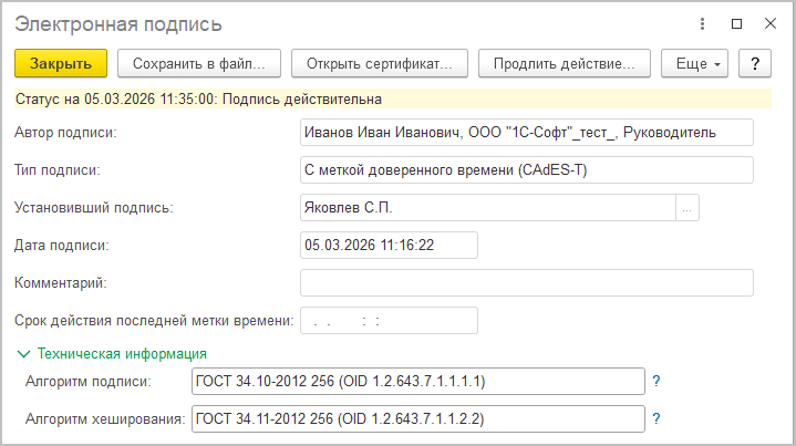 Согласно ГОСТ Р 7.0.97-2025 штамп ЭП должен содержать «дату и время подписания, если подпись содержит метку доверенного времени».