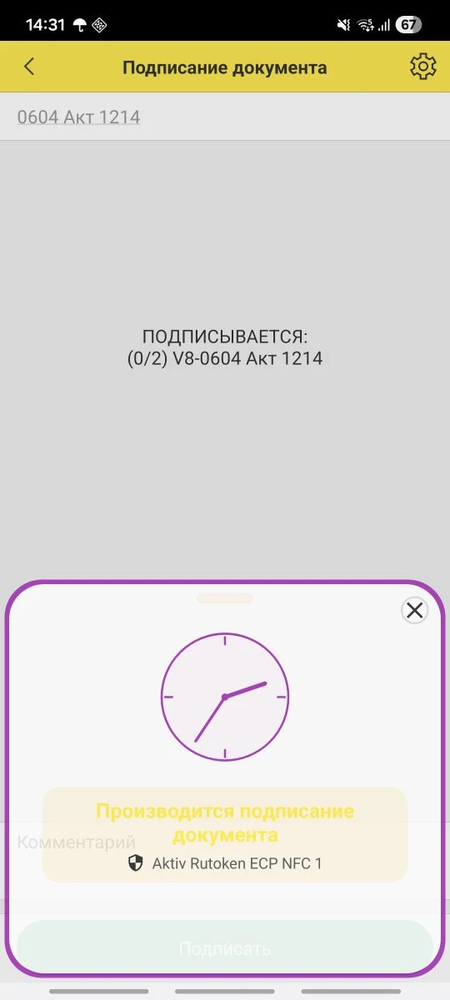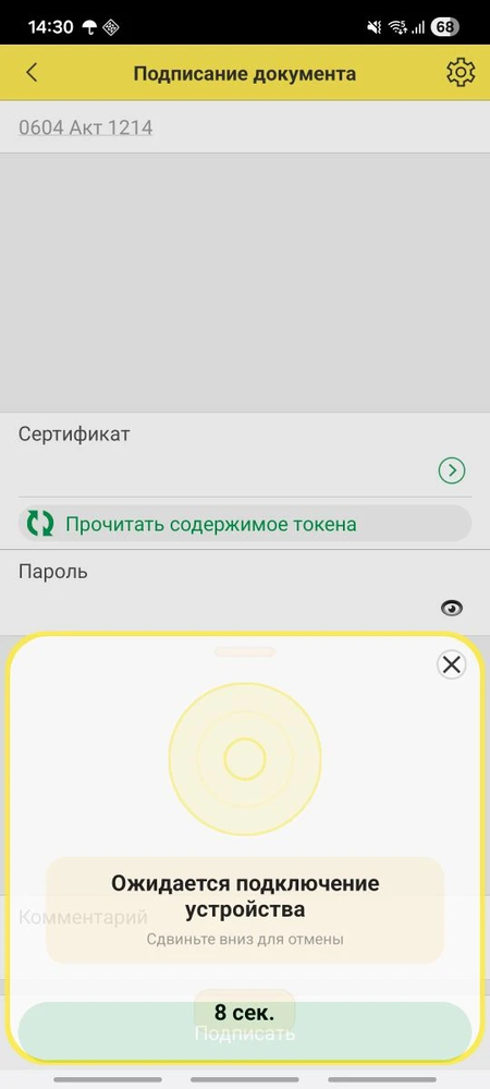 Теперь в мобильном клиенте можно подписывать документы и задачи усиленной электронной подписью с помощью токенов Рутокен (NFC или OTG).