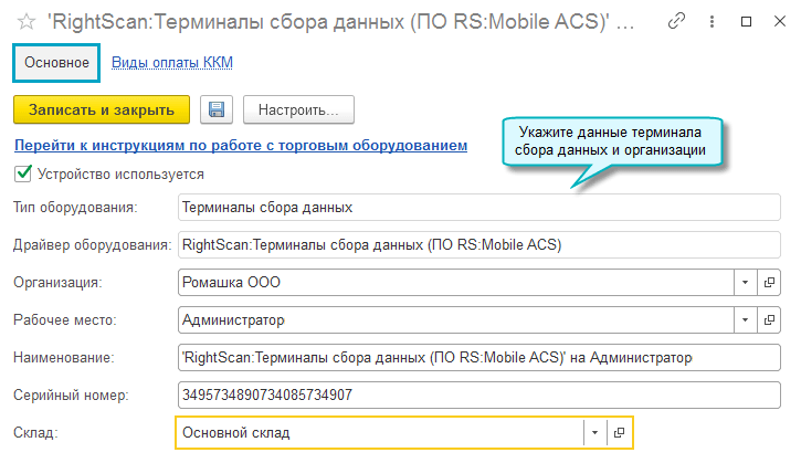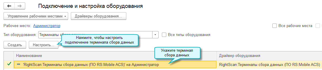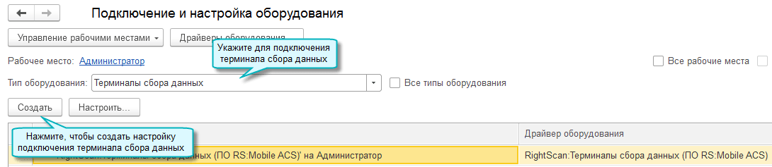 Полный интерфейс: меню "Администрирование - Настройки программы - Подключаемое оборудование".