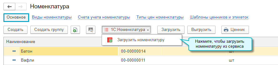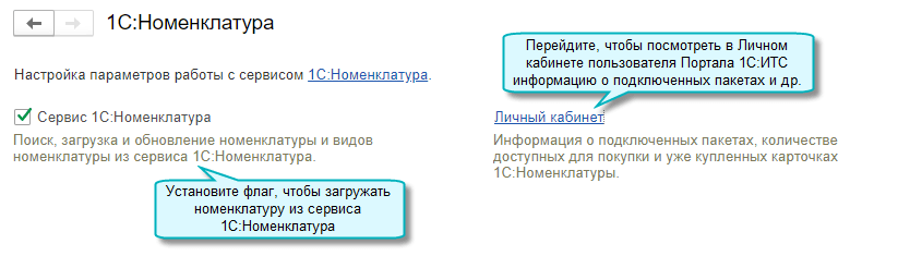 Настроить подключение к сервису 1С:Номенклатура можно также при первом обращении к нему из карточки номенклатуры.