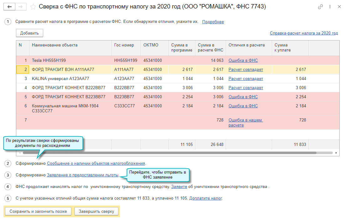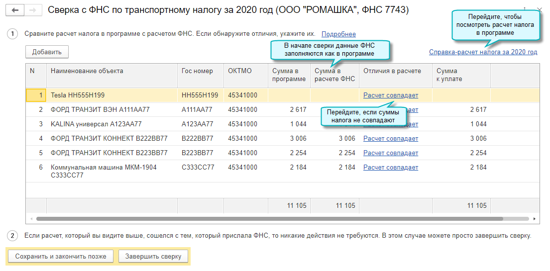 Сверки расчетов с ФНС по транспортному налогу сохраняются.