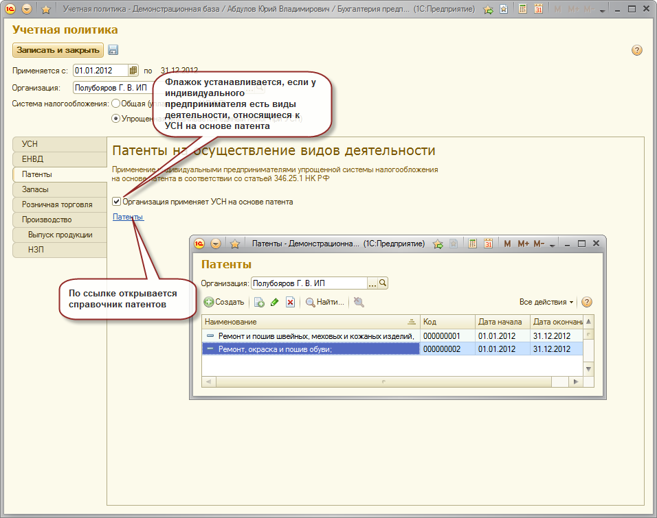 В соответствии со статьей 346.25.1 НК РФ предприниматели, осуществляющие определенные виды деятельности, вправе перейти на упрощенную систему налогообложения на основе патента. В этом случае предприниматель по каждому патенту ведет отдельную Книгу учета доходов по специальной форме. Доходы и расходы по данному виду деятельности не отражаются в Книге учета доходов и расходов по основной системе налогообложения.УСН на основе патента может применяться предпринимателями на общей или упрощенной системе налогообложения.
