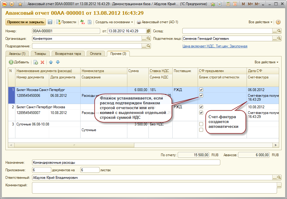 Документ "Авансовый отчет"