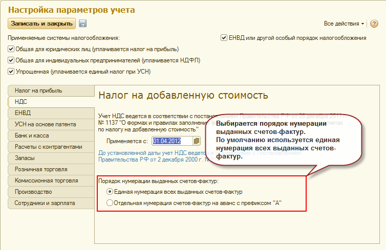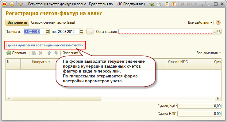 Регистрация счетов-фактур на аванс