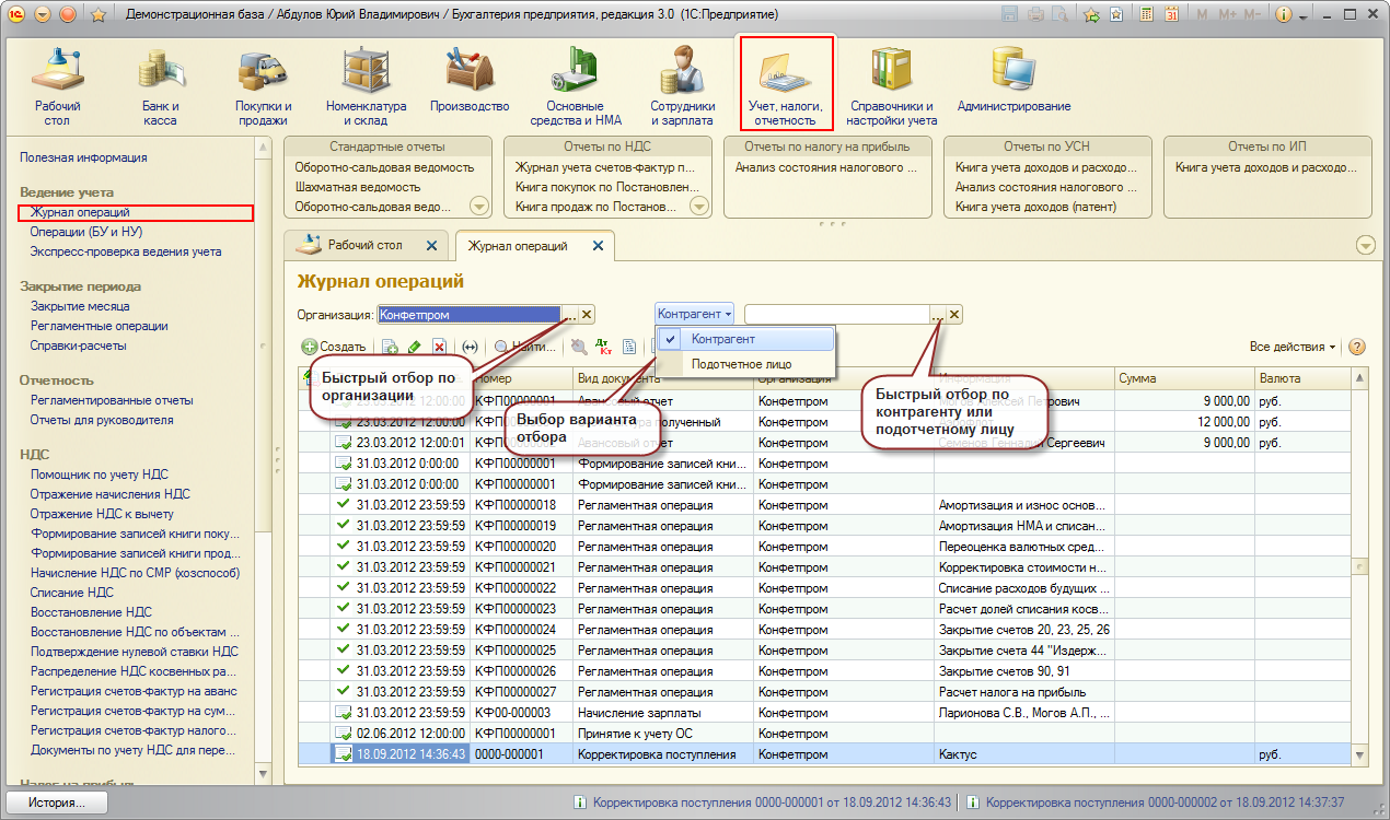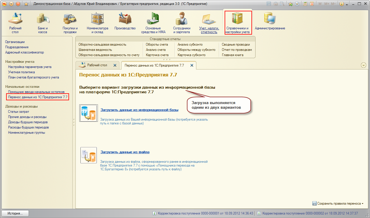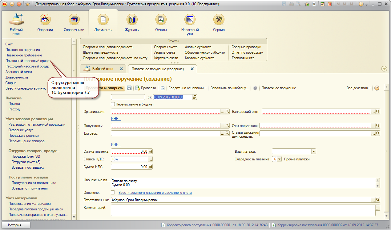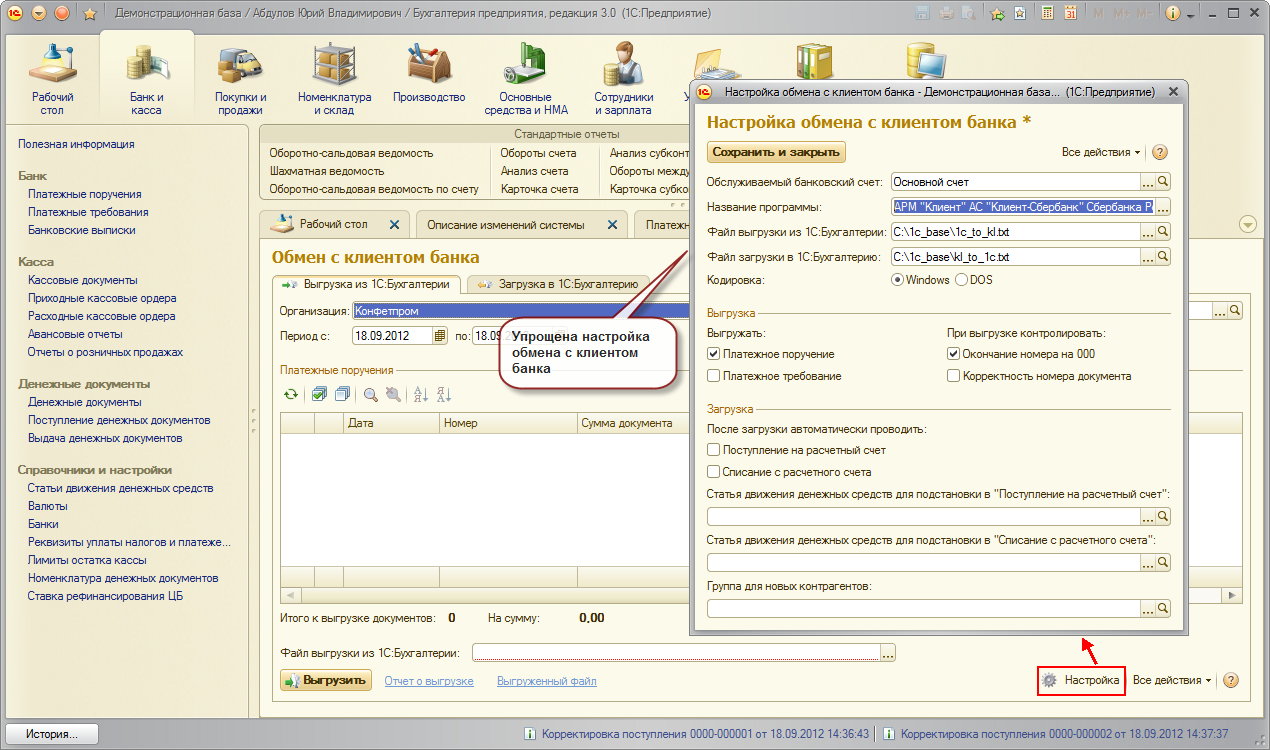 Для полноценной работы с программой следует использовать стандартный интерфейс 1С: Бухгалтерии 8
