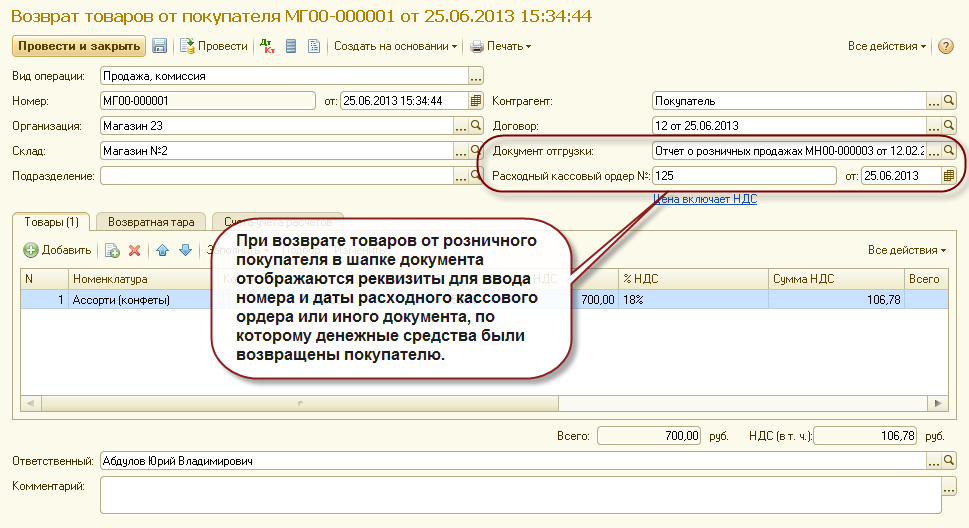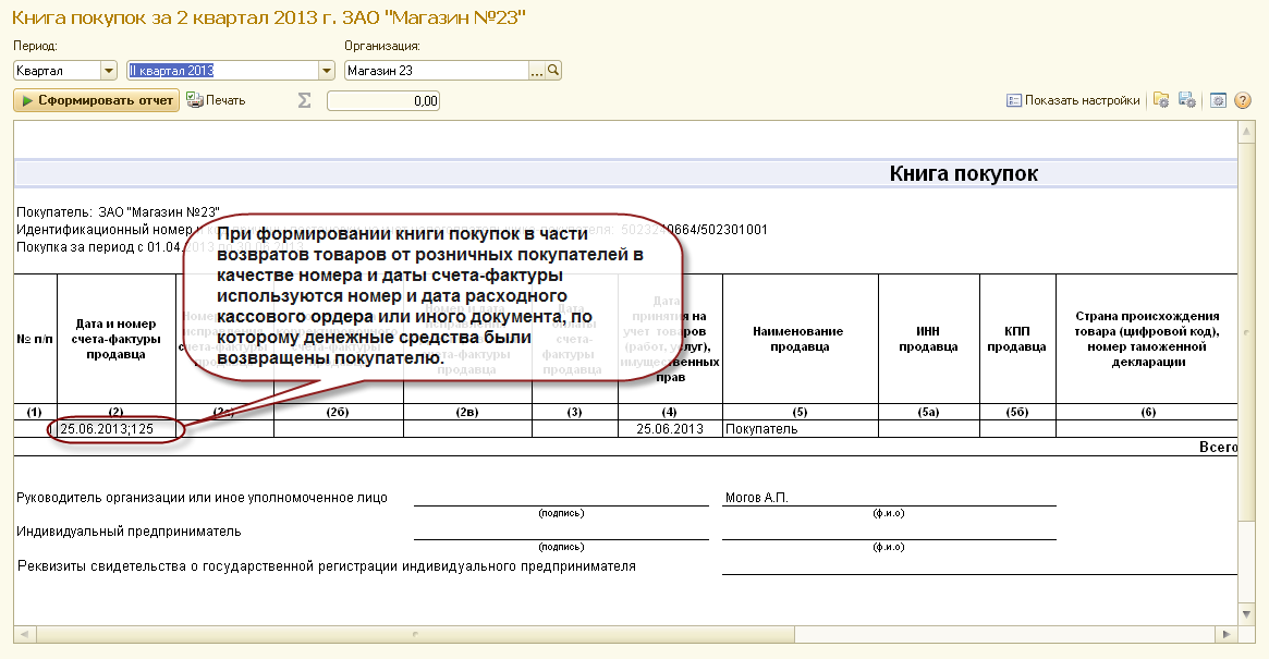 В соответствии с письмом ФНС № ЕД-4-3/8562 от 14.05.2013 при возврате товаров от розничного покупателя в книге покупок регистрируются реквизиты приходного кассового ордера или иного документа, на основании которого покупателю возвращены денежные средства.