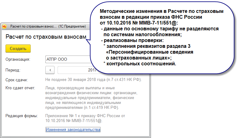 В форме Расчета по страховым взносам в редакции приказа ФНС России от 10.10.2016 № ММВ-7-11/551@ реализованы проверки: