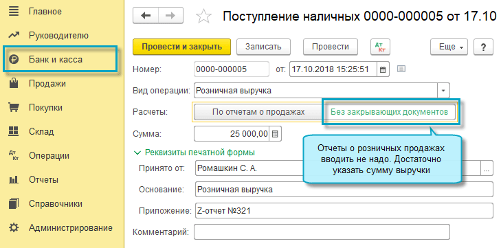 Учитывать розничную выручку в простом интерфейсе можно без отчетов о розничных продажах. Данный способ доступен только для тех, кто