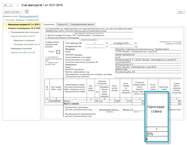 Добавлена поддержка ставок НДС 20% и 20/120 в электронных документах.