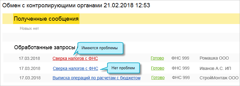 Ответ ФНС поступит в сообщении от сервиса "1С-Отчетность".