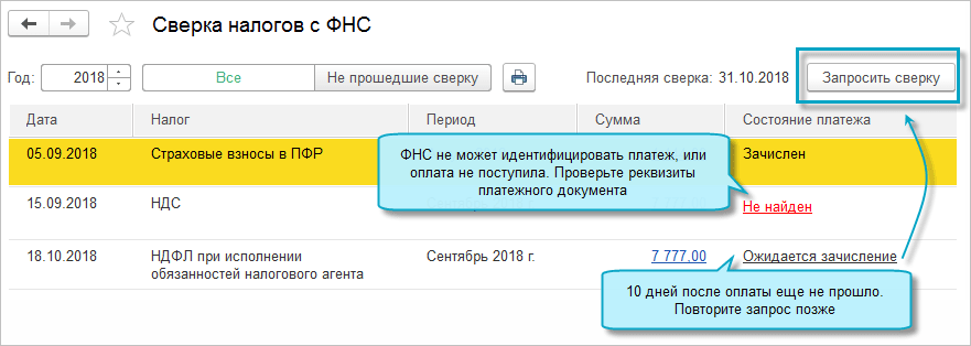 Предложение проверить, что платеж дошел до ФНС, появляется через 10 рабочих дней после оплаты налога.