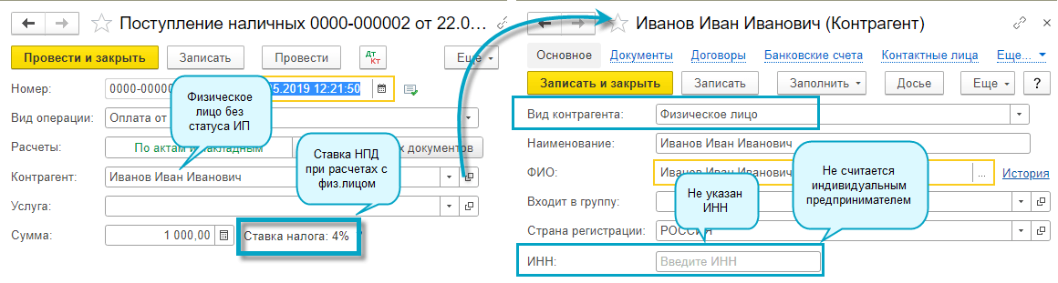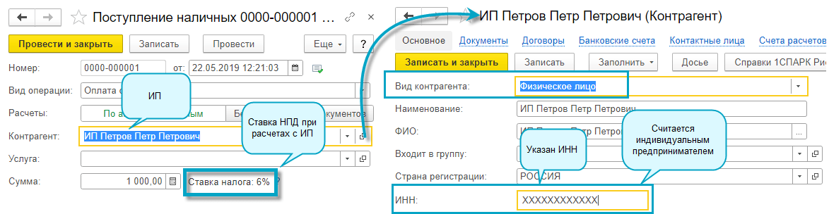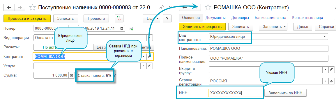 Добавлена подсказка о ставке НПД по текущей операции на форму документа поступления наличных рядом с полем суммы.