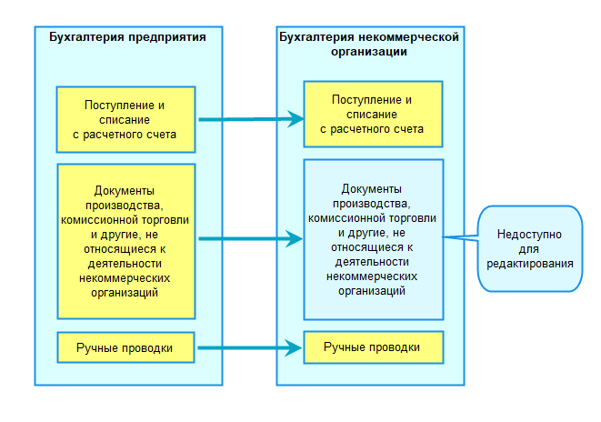 Добавлен переход на конфигурацию "Бухгалтерия некоммерческой организации". Если вы ведете учет некоммерческой организации, то обновите вашу информационную базу на эту конфигурацию. После перехода все данные полностью сохраняются.