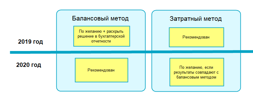 Балансовый метод рекомендован к применению, начиная с отчетности за 2020 год. По желанию организация вправе применять этот метод с 1 января 2019 года, но должна специально раскрыть это решение в бухгалтерской отчетности. Затратный метод может применяться и в 2020 году, если результаты расчета отложенного налога совпадают с результатами балансового метода. Налог на прибыль рассчитывается балансовым методом, согласно требованиям ПБУ 18 в редакции Приказа Минфина РФ от 20.11.2018 № 236н. Прежняя редакция ПБУ18 содержала затратный метод.