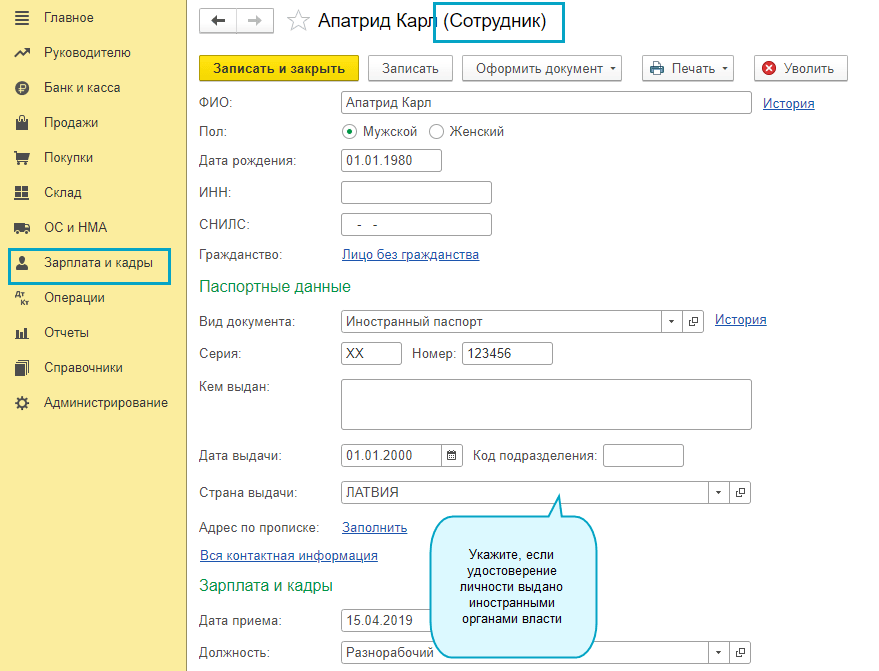 Добавлена возможность указания кода страны для заполнения 2-НДФЛ и Расчета по страховым взносам для сотрудников, получивших удостоверение личности у иностранных органов власти.