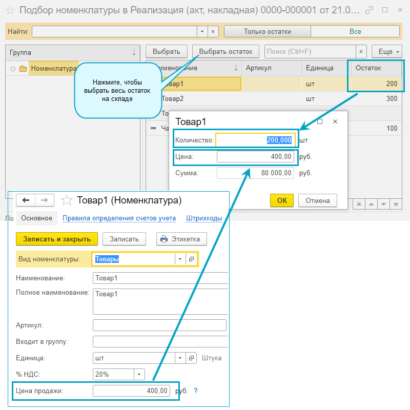 Добавлена возможность подбора товаров по остаткам на складе.