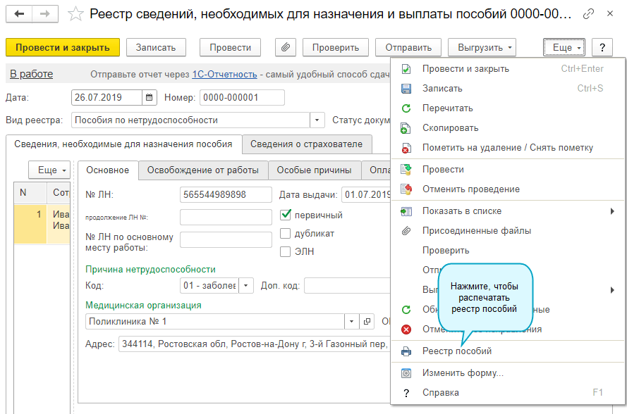 Для участников пилотного проекта ФСС добавлена возможность печати реестра пособий ФСС.