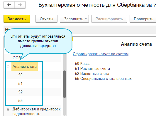 Группа отчетов "Денежные средства" замена на Анализ счетов 50,51,52,55.