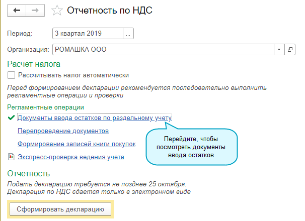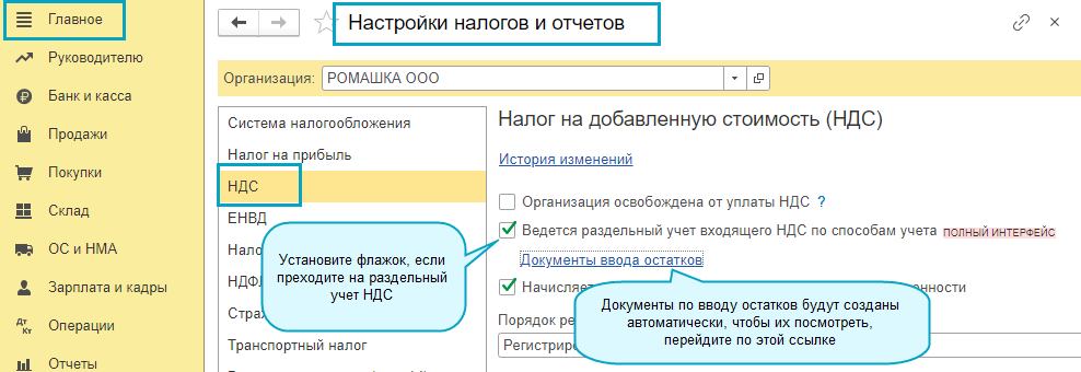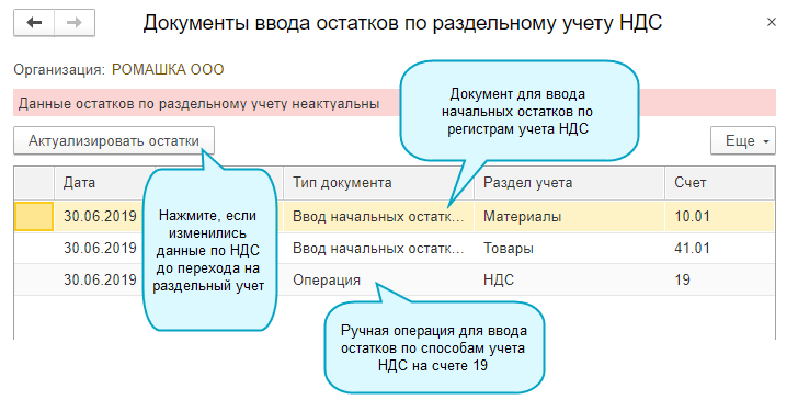 Добавлена возможность автоматического ввода остатков по раздельному учету НДС.