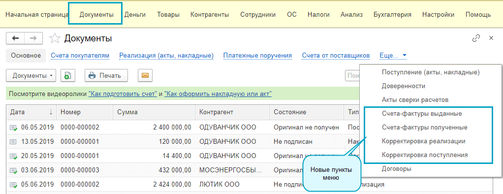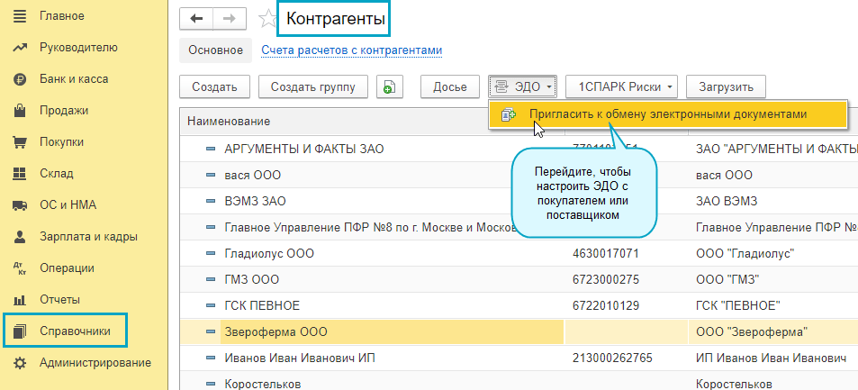 Добавлена возможность быстрой настройки обмена электронными документами с поставщиками и покупателями из справочника организаций и справочника контрагентов.