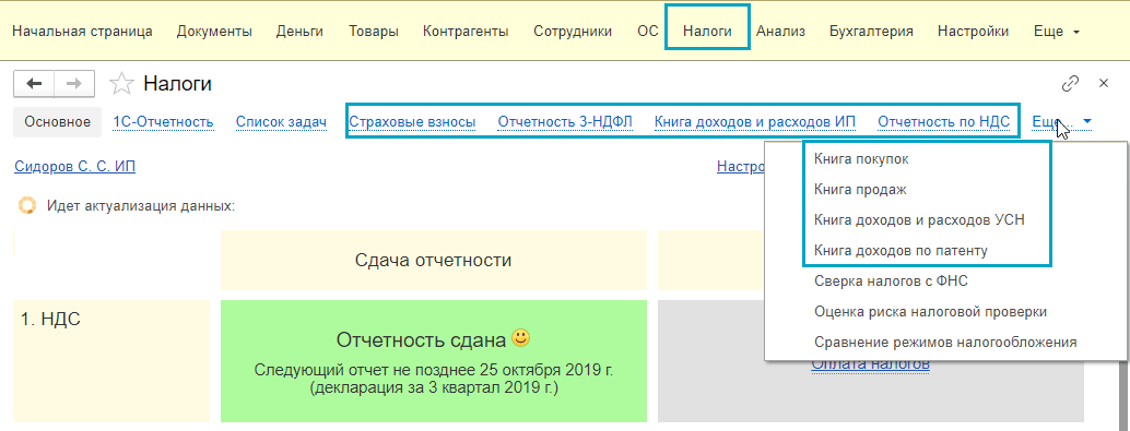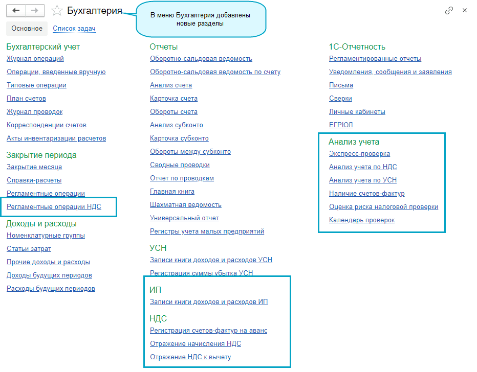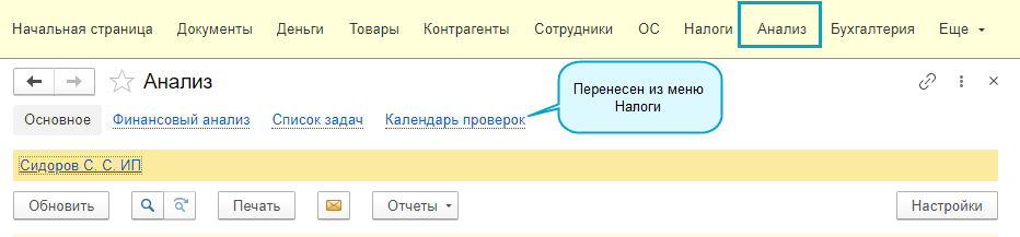 Календарь проверок перемещен из меню Налоги в меню Анализ