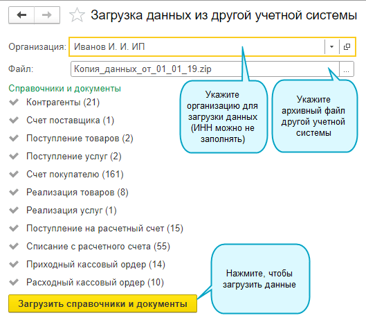 Добавлена возможность загрузки данных из архивного файла другой учетной системы.