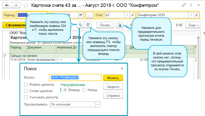 Добавлены кнопки поиска и предварительного просмотра в командные панели отчетов.