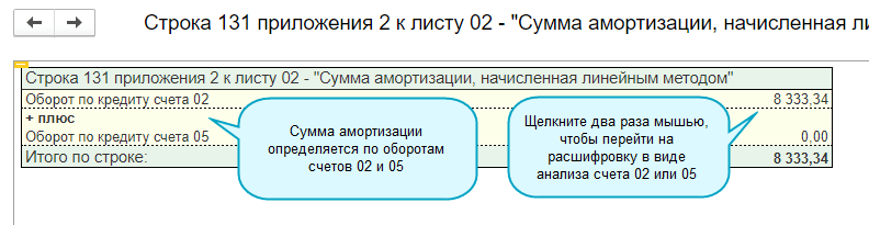 Добавлена возможность расшифровки в декларации по прибыли показателей амортизации с помощью анализа счета 02 или 05.