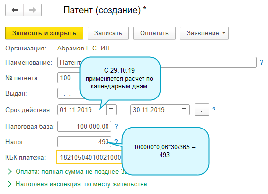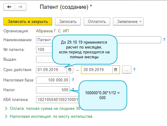 Если рассчитанная сумма налога не совпадает с суммой, указанной в патенте, исправьте рассчитанную сумму вручную.