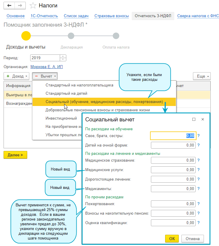 В декларацию 3-НДФЛ добавлены новые виды доходов от продажи имущества и вычеты на приобретение медицинских услуг и медикаментов в соответствии с Приказом ФНС России от 07.10.2019 № ММВ-7-11/506@