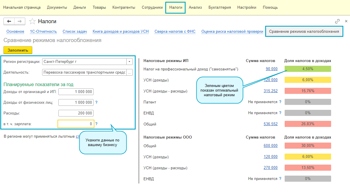 Выбрать оптимальный режим налогообложения для вашего бизнеса поможет отчет Сравнение режимов налогообложения