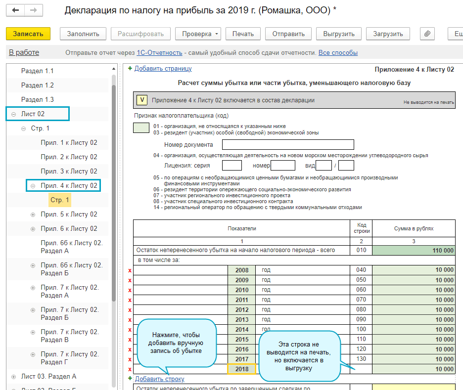 Добавлена возможность указать убытки более, чем за 10 лет, в электронной форме представления Декларации по налогу на прибыль