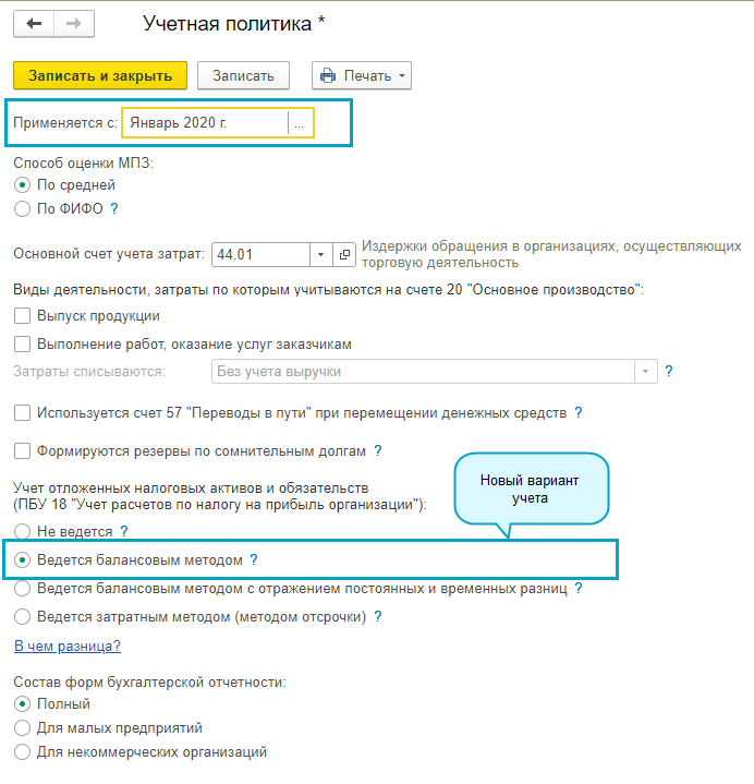 Упрощена поддержка ПБУ 18 - добавлен метод, для которого не требуется вести учет постоянных и временных разниц. Метод основан на Рекомендациях Фонда “НРБУ “БМЦ“ - "Порядок учета налога на прибыль" и "Регистр учета временных разниц". Балансовый метод с отражением постоянных и временных разниц и затратный метод (метод отсрочки) остаются доступными для использования.