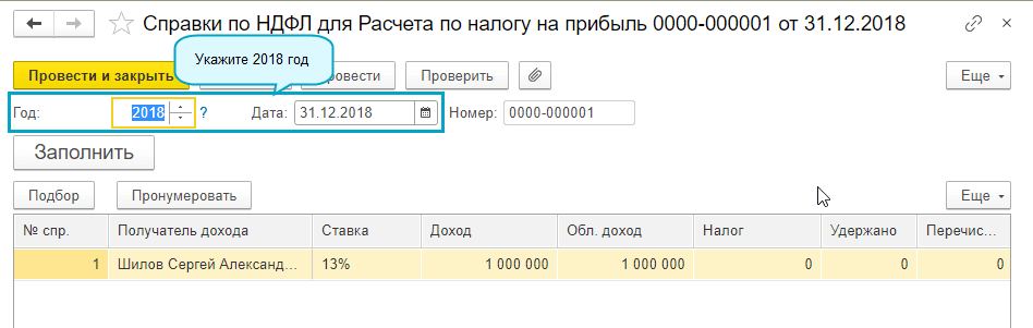 Простой интерфейс: меню "Сотрудники - Все документы по НДФЛ" Кнопка "Создать - Справки НДФЛ для расчета налога на прибыль".