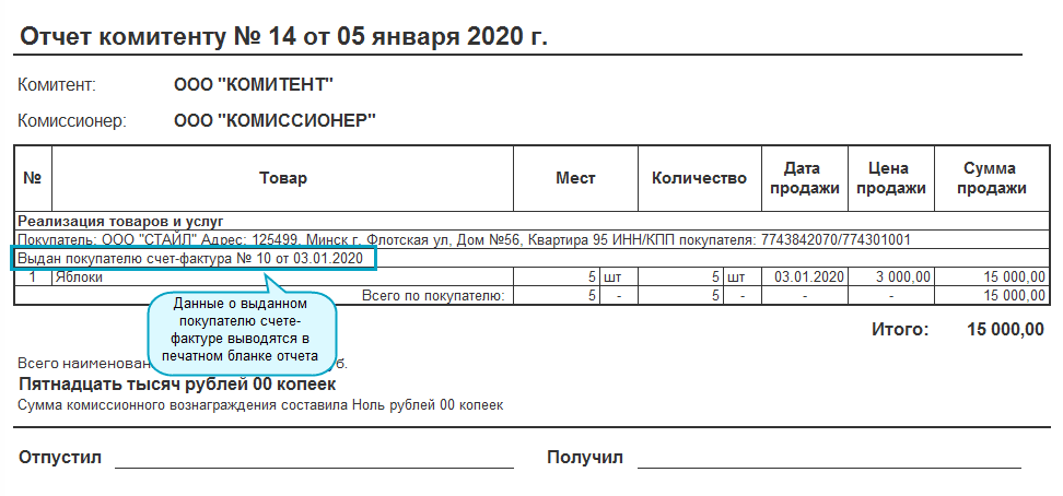 В Отчет комитенту добавлена информация о выданном счете-фактуре покупателю.