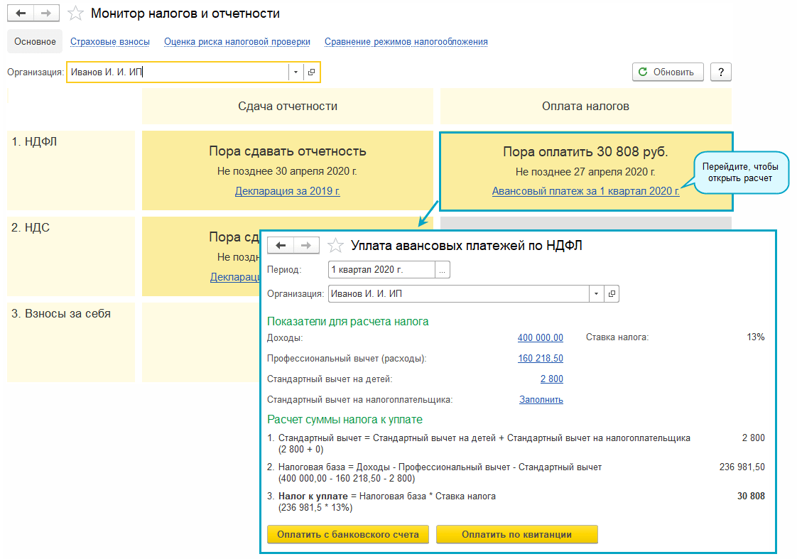 В Монитор налогов и отчетности добавлены данные по сдаче отчетности и оплате НДФЛ для ИП.