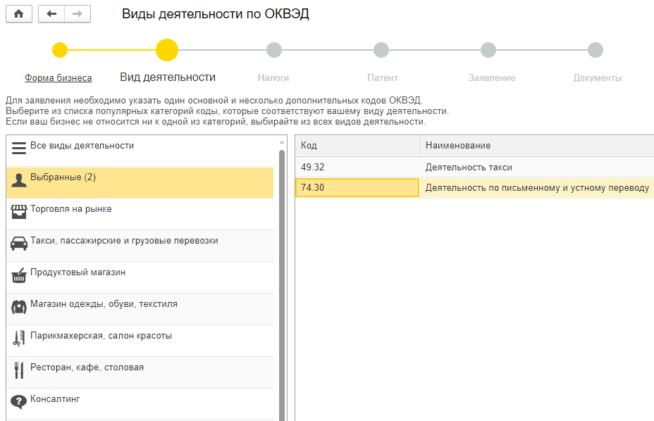 ОКВЭД, которые соответствуют вашему виду деятельности.