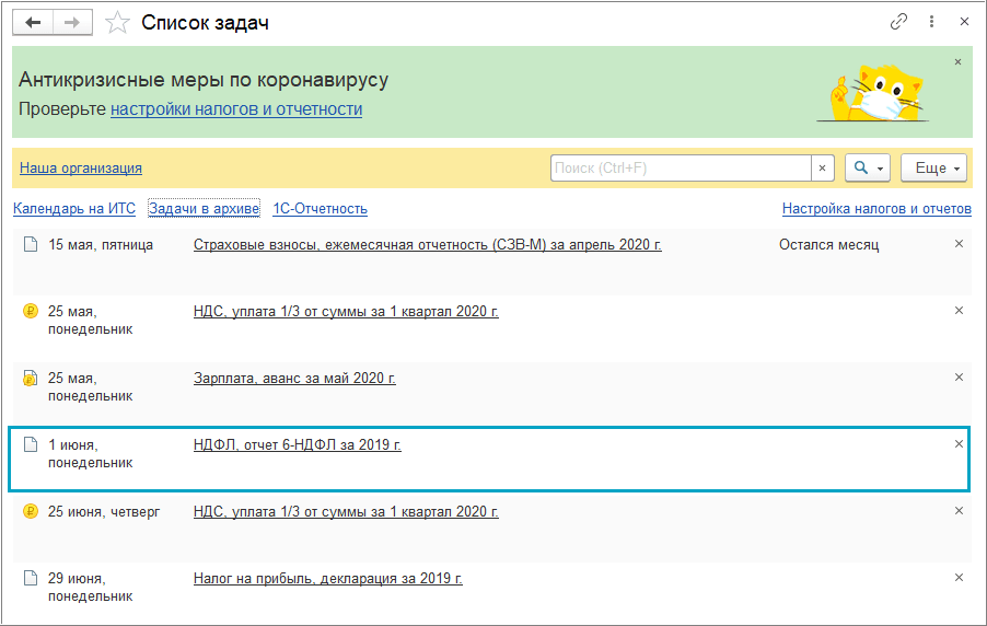 Срок сдачи 6-НДФЛ за 2019 год перенесен на 01 июня 2020 года (Постановление Правительства от 02.04.2020 года № 409).
