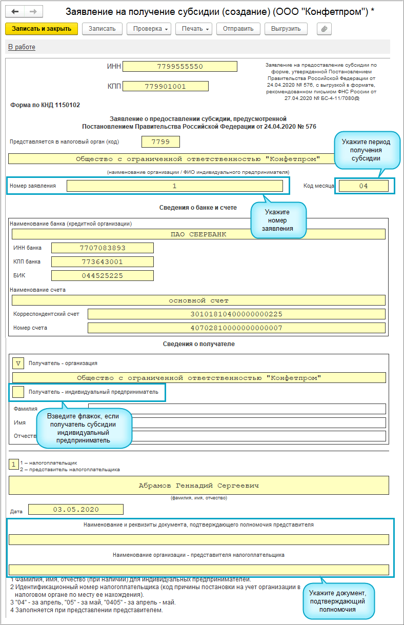 Добавлена возможность сформировать и отправить заявление на получение субсидии на выплату заработной платы организациям и ИП малого и среднего бизнеса, занятых в отраслях наиболее пострадавшим от коронавирусной инфекции (Постановление Правительства от 24.04.2020 года № 576).