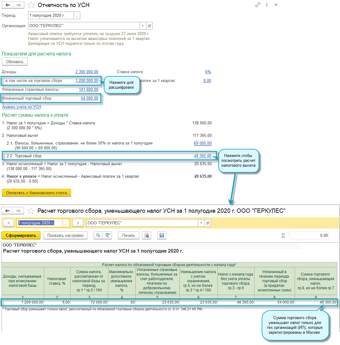 Простой интерфейс: меню "Налоги - Основное - УСН".